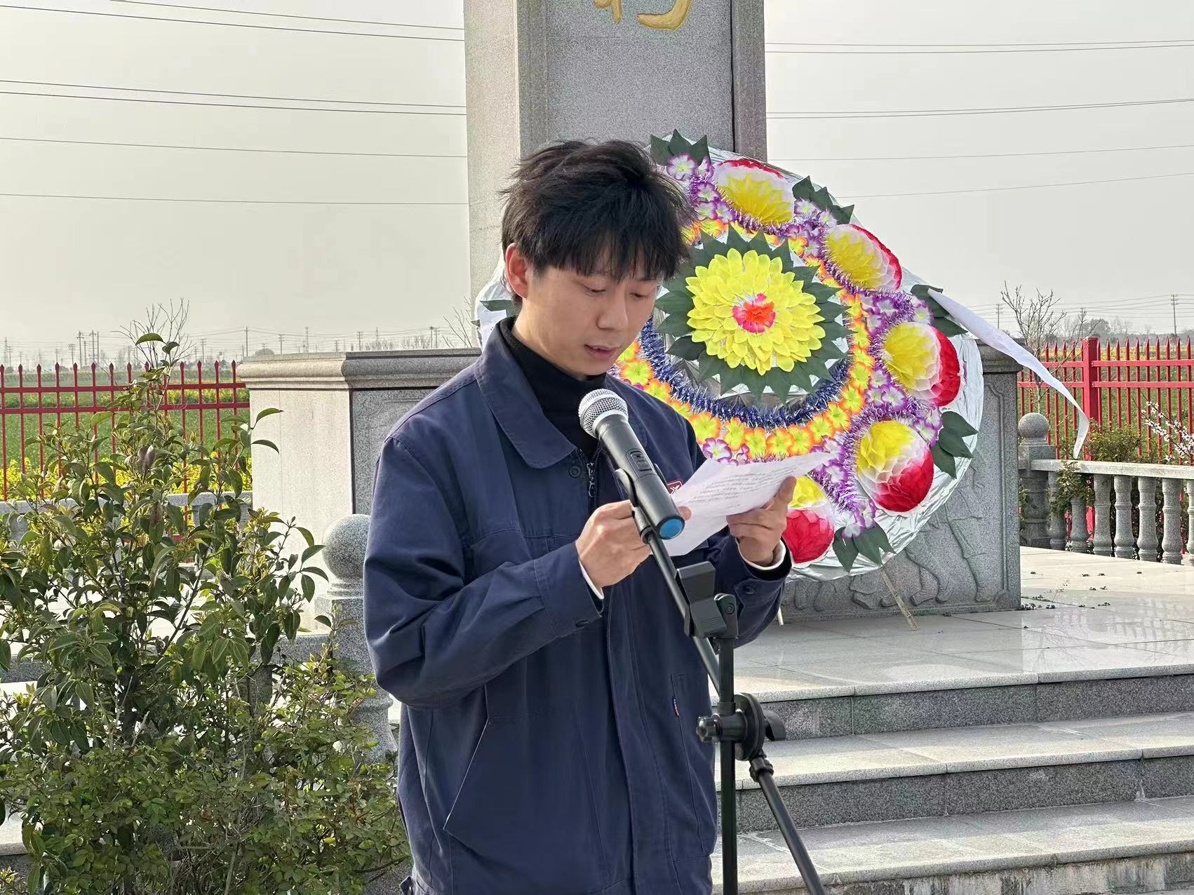 祭掃活動開始前,公司黨支部委員劉藝領學了鎮黨委“ 3月份政治學習活頁”。活動中,公司總經理、黨支部書記翟海平、副總經理、黨支部委員竇琴向孫劍心烈士敬獻花圈。孫劍心烈士墓的主要倡議籌建者、泰州金太陽光伏發電有限公司董事長李志宏深情回憶籌建孫劍心烈士墓的經歷,衷心感謝星火公司給予的大力支持。