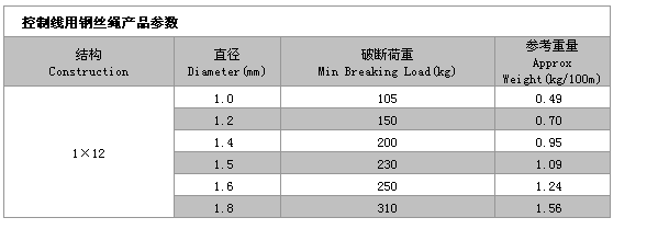 1*12鋼絲繩(控制線用)